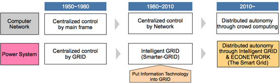 Smart-GRID is now a kind of boom. The main characteristics of Smart-GRID; Bi-lateral, Intelligence, Visualize, and Autonomy, are what VPEC has proposed since 2002. Smart-GRID consists of two aspects. One is upgrading the existing GRID, utilizing Information Technology, and the other is to visualize the status of electricity demand and consumption by predicting a behavioral changes and energy conservation.